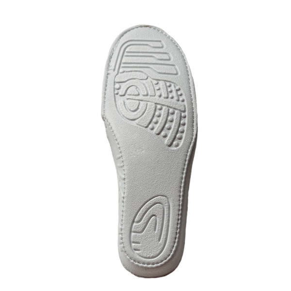 Подошва сделана из сверхлегкого материала EVA и снабжена специальной вставкой Antishock в пяточной части, которая снимает ударную нагрузку с голеностопа ребенка при ходьбе, беге или прыжках. А еще эта подошва белого цвета и отлично подходит для занятий в спортивном зале, так как не оставляет следов и не царапает пол.